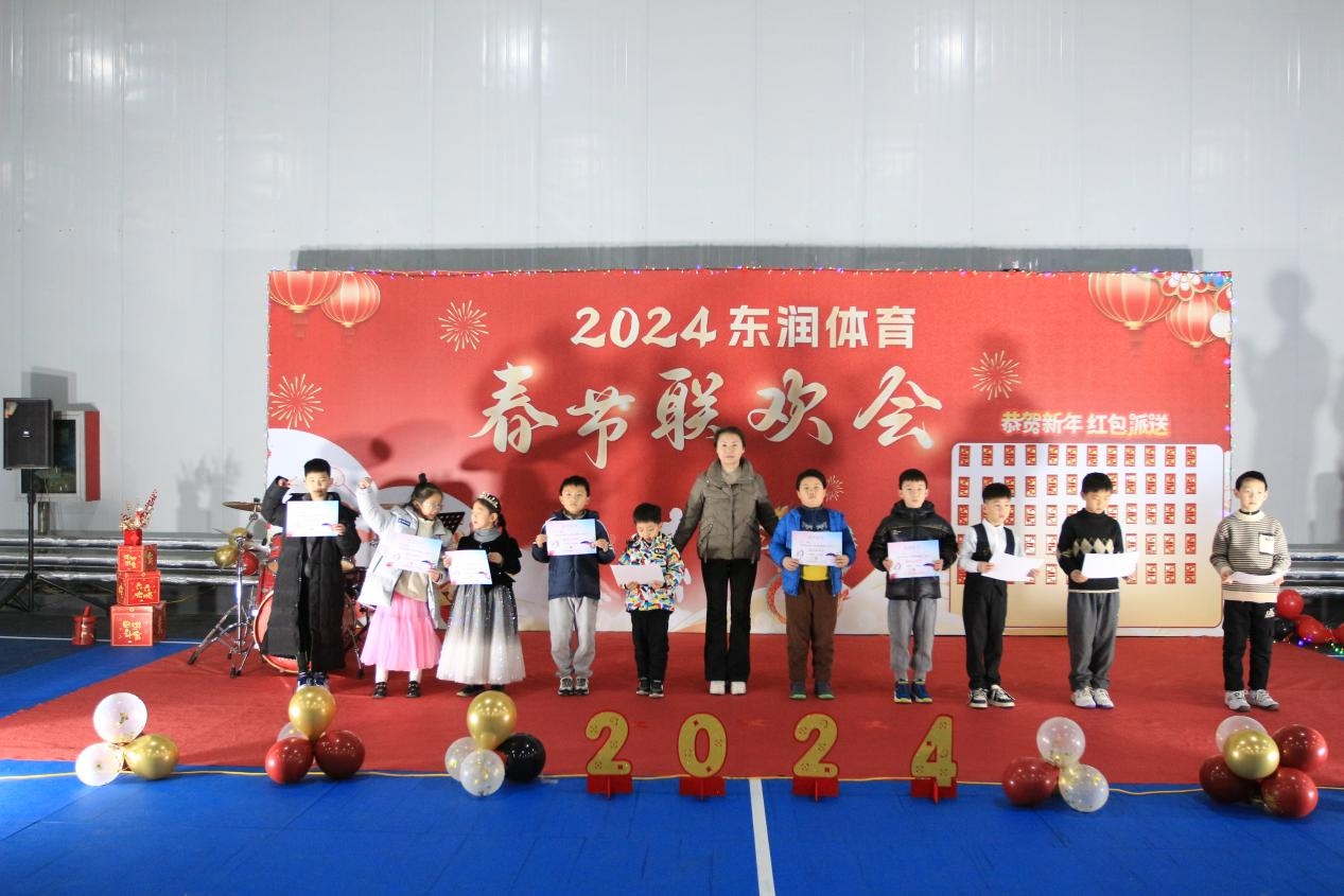 晚會(huì)開場(chǎng)主持人致開幕詞,介紹各位嘉賓與領(lǐng)導(dǎo)。隨后東潤(rùn)集團(tuán)副總俞靜致詞,“陽(yáng)光體育,強(qiáng)身健體”是發(fā)揚(yáng)奧運(yùn)精神和團(tuán)結(jié)拼搏的宗旨,孩子們用心鍛煉,在運(yùn)動(dòng)中健康柱成長(zhǎng)與大家分享快樂。其次,周教練攜手全體教練組給大家賀詞拜年。晚會(huì)在歌曲《十年》中拉開帷幕,憑借兩位小朋友歡快的歌聲瞬間點(diǎn)燃了場(chǎng)上觀眾火熱的心,緊接著口風(fēng)琴、吉他串燒、舞蹈、魔術(shù)等多種表演形式紛紛上場(chǎng),給觀眾帶來了一場(chǎng)視覺與聽覺的盛宴。激昂的旋律,充滿活力的表演,贏得在場(chǎng)觀眾陣陣的掌聲和歡呼聲,最后東潤(rùn)集團(tuán)副總俞靜上臺(tái)為各位小朋友們頒發(fā)榮譽(yù)證書,伴隨著新年快樂的歌聲春節(jié)晚會(huì)圓滿結(jié)束。
