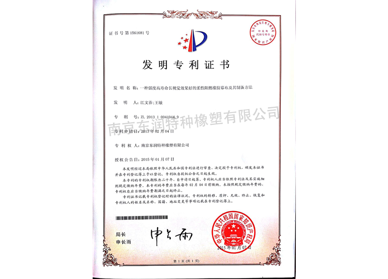 發(fā)明專利-一種強度高壽命長視覺效果好的柔性阻燃橡膠幕布及其制備方法