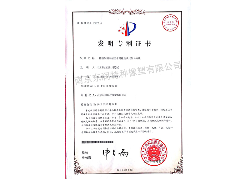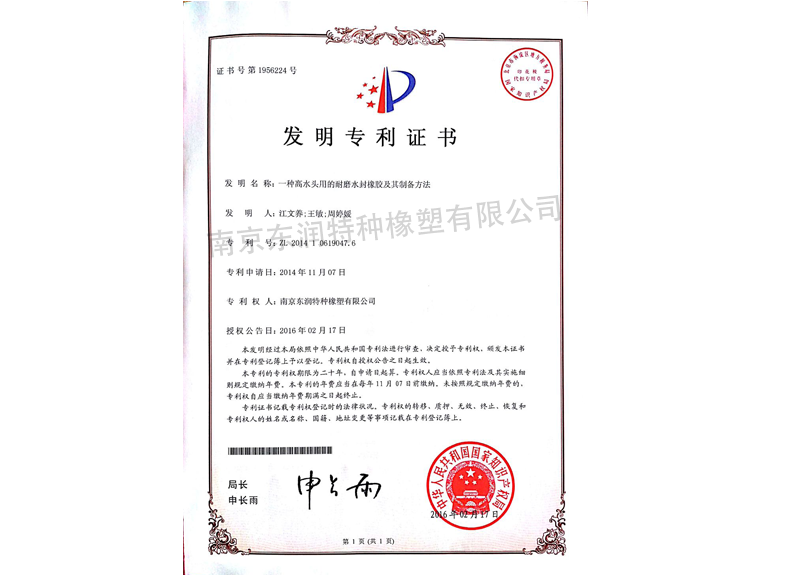 發(fā)明專利-一種高水頭用的耐磨水封橡膠及其制備方法