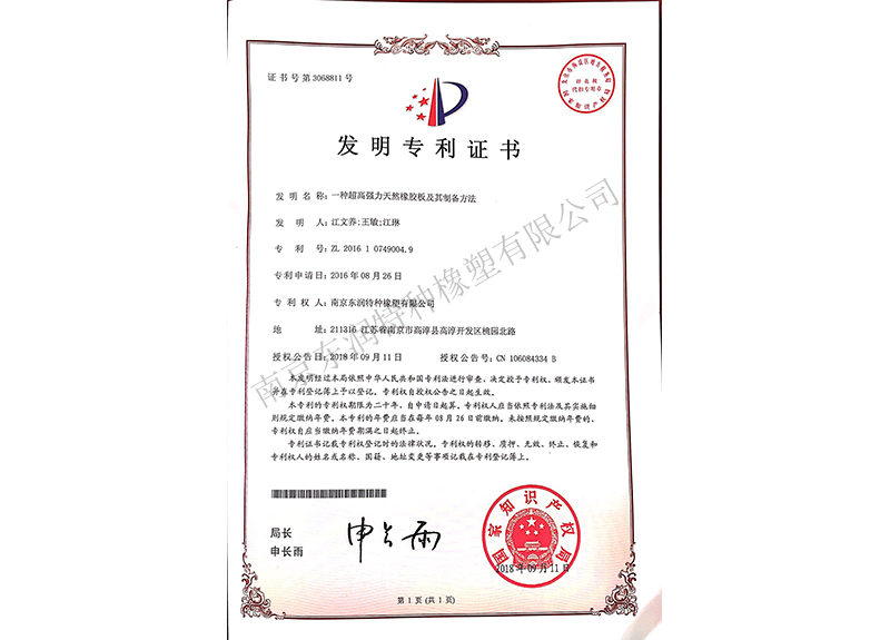 發(fā)明專利--一種超高強力天然橡膠板及其制備方法