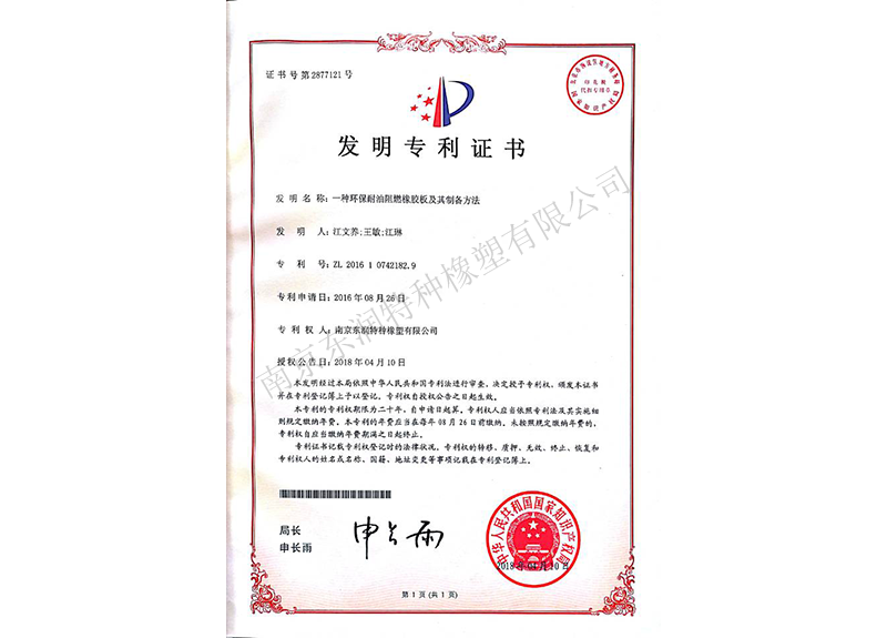 發(fā)明專利--一種環(huán)保耐油阻燃橡膠板及其制備方法